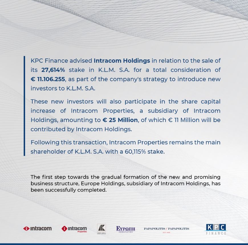 KPC Finance Advises Intracom Holdings on Sale of 27.6% in K.L.M. S.A. and New Investor Entry